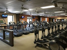Lots of cardio options including treadmills, ellipticals, recumbent bikes, spin bikes, and more